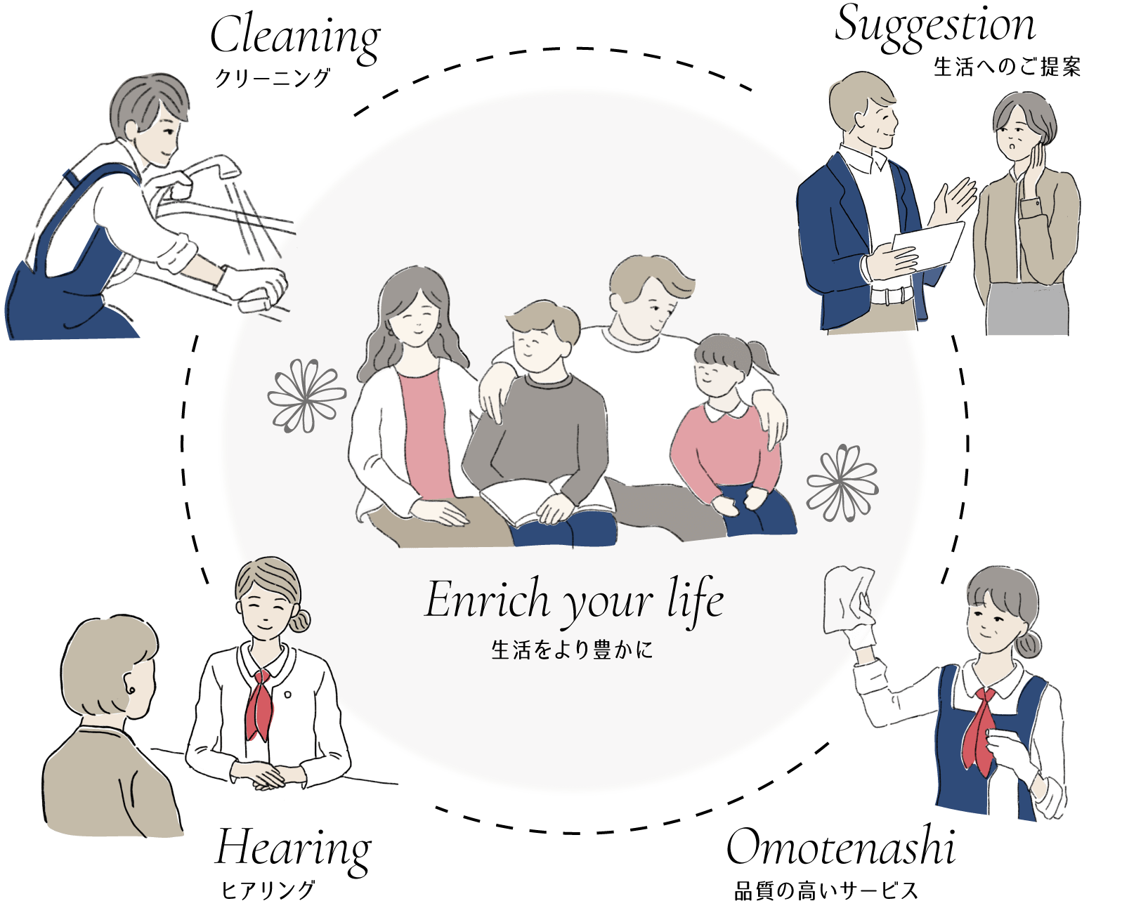 Épaisでは会員登録された方に、必ずヒアリングを行っています。 お客様の声を受け止め、要望に応えることでサービスの質の向上をはかり高い品質の家事代行サービスを実現しています。 -